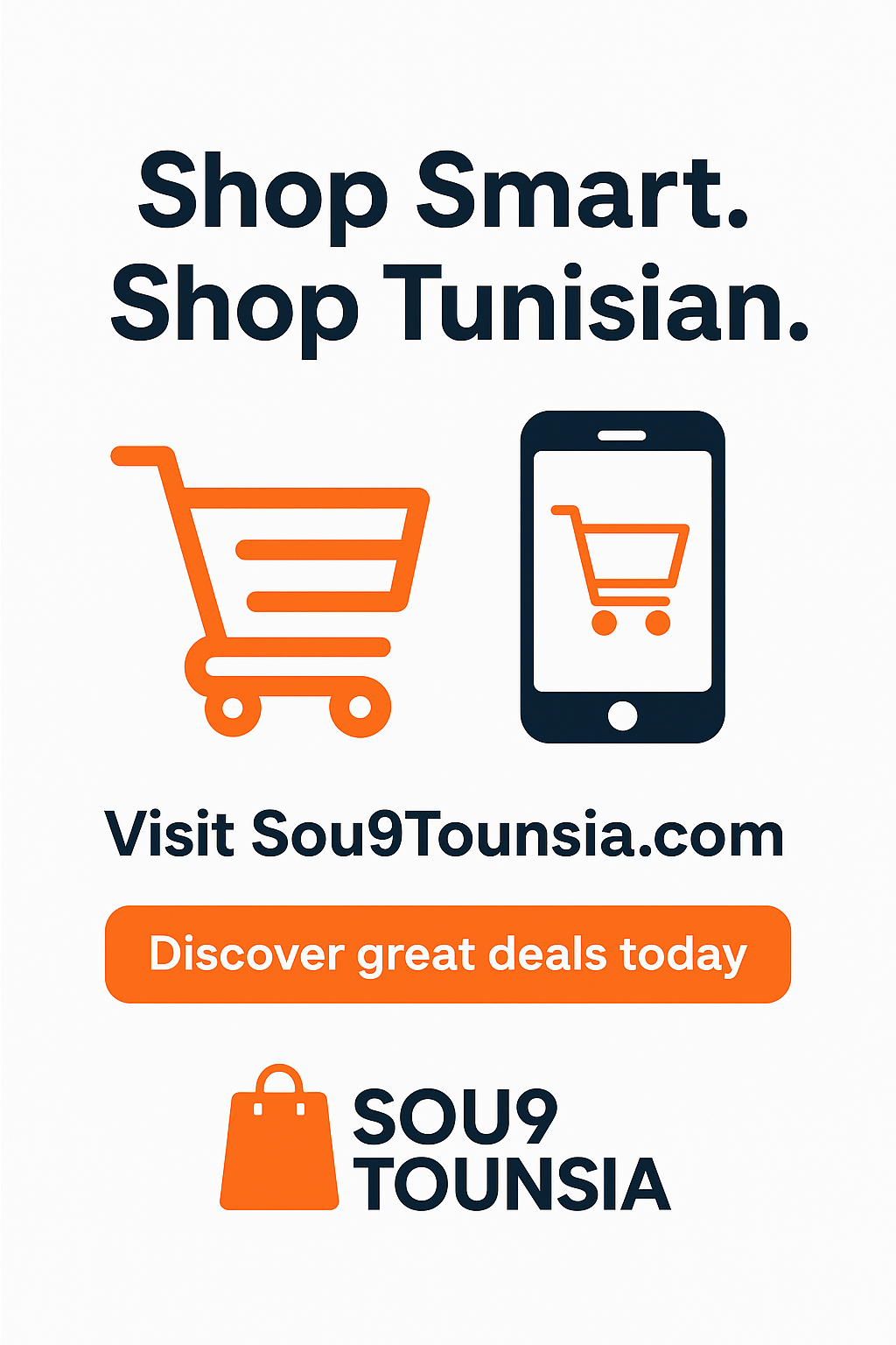 Découvrez des offres exclusives sur une large gamme de produits : mode, technologie, maison, artisanat, beauté, et plus encore. Notre objectif est de soutenir l’économie locale tout en offrant aux Tunisiens un espace d’achat moderne et fiable.